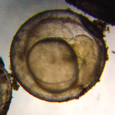 These images were obtained using a Meiji 1-7x zoom microscope and a Sony DSC-F707 5 Mega-pixel camera. The images of eggs are at 7x, fish at 1x. The "Day numbers" are educated guesses at best. Eggs were being laid during the period of collection, and the temperature, which varied a great deal, has a big effect on development rate.